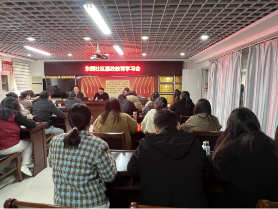 近日,为进一步加强党风廉政建设,增强党员干部的廉洁自律意识,东园社区组织开展“筑牢廉洁自律防线,共筑社区清风正气”为主题的廉政教育学习会。