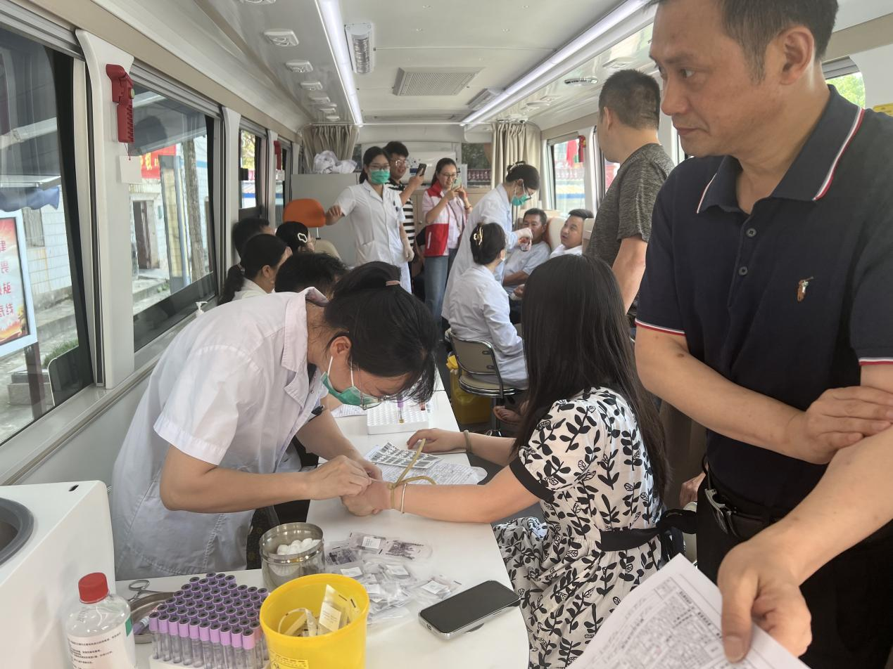 6月14日,在世界献血者日来临之际,东关社区志愿者积极参加晋熙镇组织的无偿献血活动。
