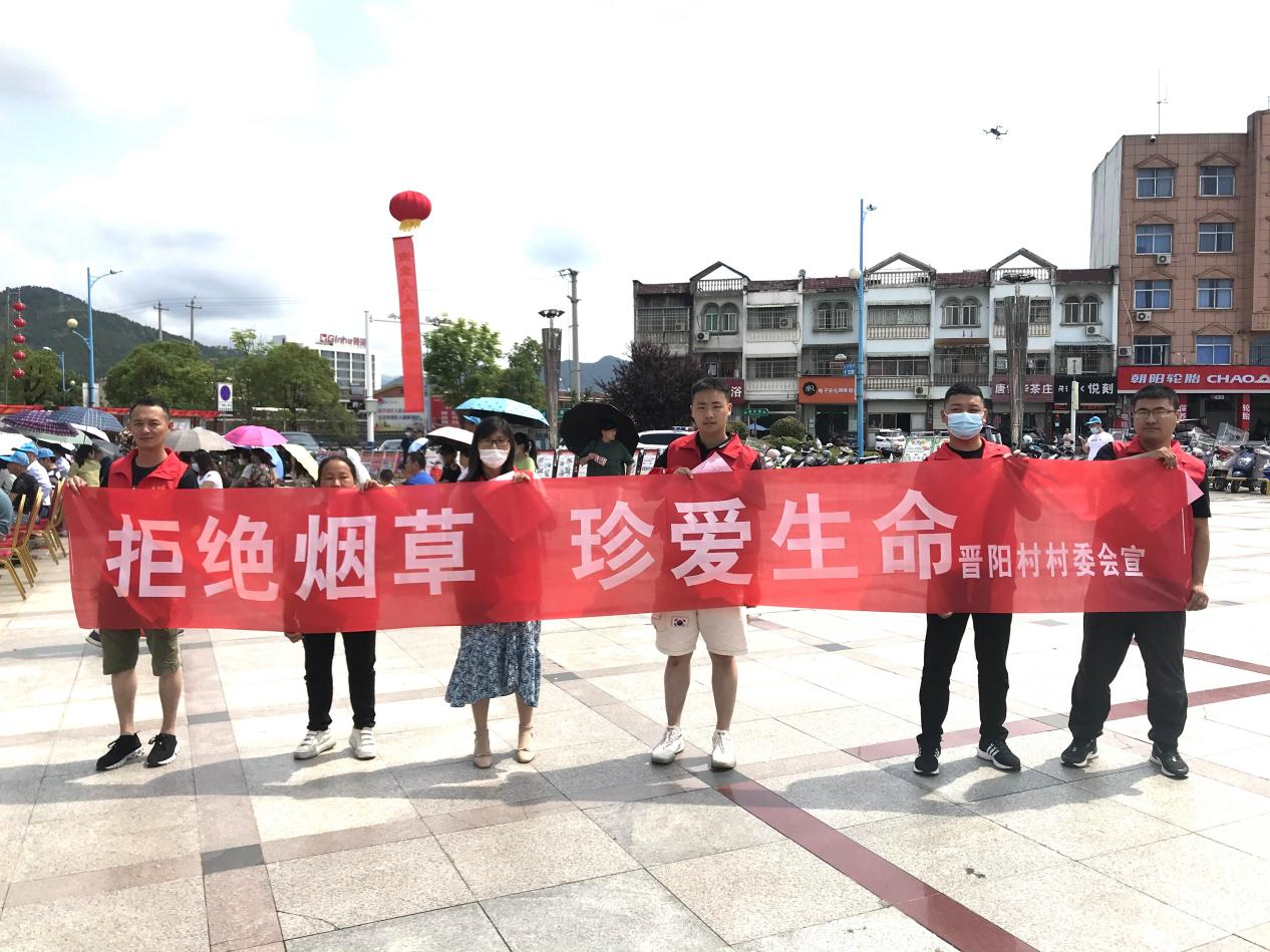 为了提高村民对烟草危害的认识,营造一个健康、清洁、无烟的环境,晋阳村两委迅速行动,召开控烟工作部署会,成立了控烟工作领导小组。小组成员在6月10日上午在汪洋广场开展了以“保护青少年 远离传统烟草产品和电子烟”为主题的世界无烟日宣传活动。