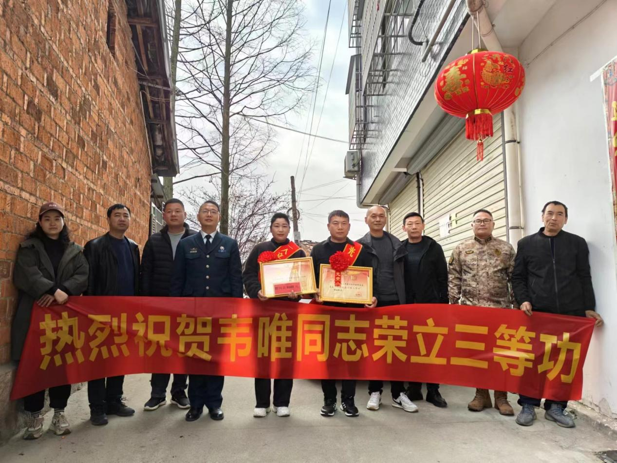 3月14日,太湖县人武部、县退役军人事务局、晋熙镇武装部有关领导及西关社区工作人员一起来到现役军人韦唯家中,为其家属送去因韦唯同志荣立三等功的喜报,并对家属进行慰问。