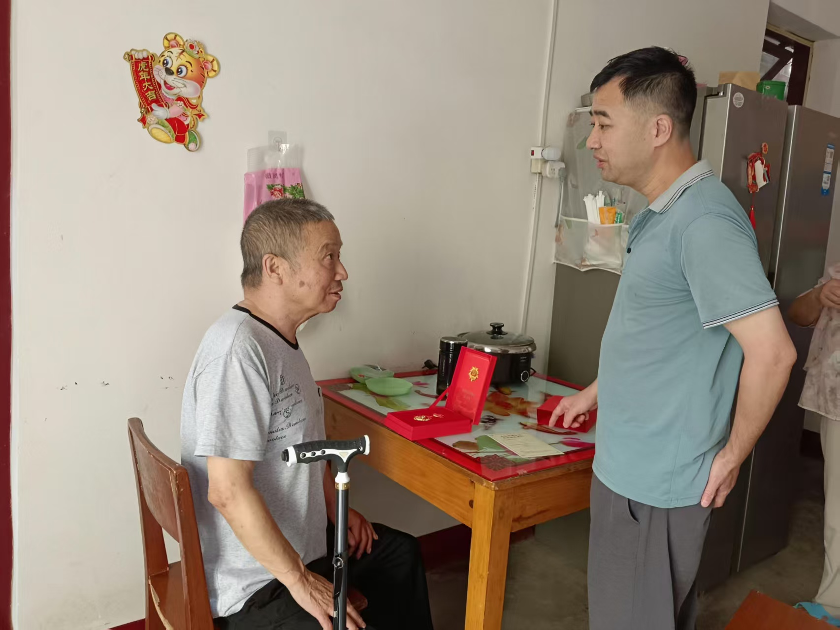 近日,西关社区党建指导员与社区工作人员一同开展“光荣在党50周年”纪念章上门颁发活动,为行动不便的老党员送去党的关怀与敬意。