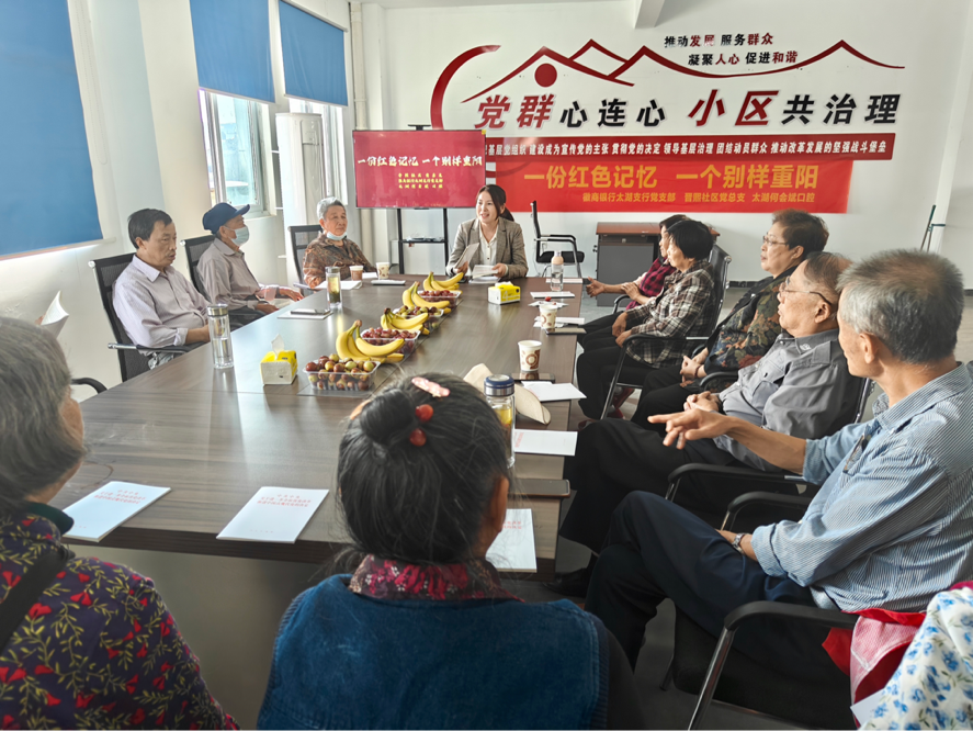 金秋送爽,丹桂飘香。为弘扬中华民族尊老敬老的传统美德,传承红色文化基因,重阳节当天,晋熙社区联合共建单位徽商银行太湖支行开展了以“一份红色记忆 一个别样重阳”为主题的庆祝活动。