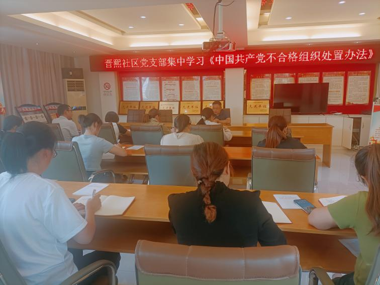 为深入推进全面从严治党,进一步加强党员教育,保持党员队伍的先进性和纯洁性,近日,晋熙社区组织开展了《中国共产党不合格党员组织处置办法》专题学习。