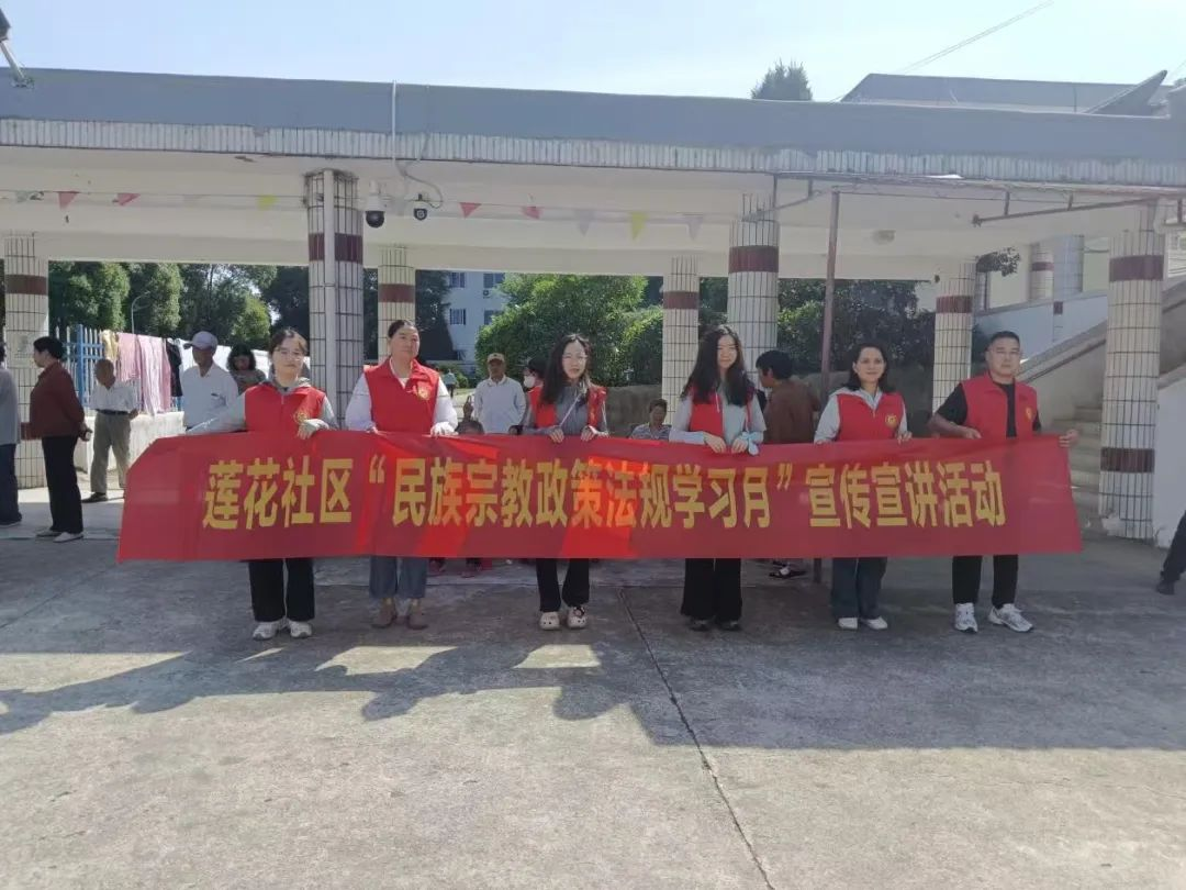 为深入学习贯彻党的二十届三中全会精神,全面贯彻习近平法治思想,聚焦铸牢中华民族共同体意识、系统推进我国宗教中国化,加强民族宗教政策法规宣传教育,提升治理能力和水平,近日,莲花社区开展相关学习宣传活动。