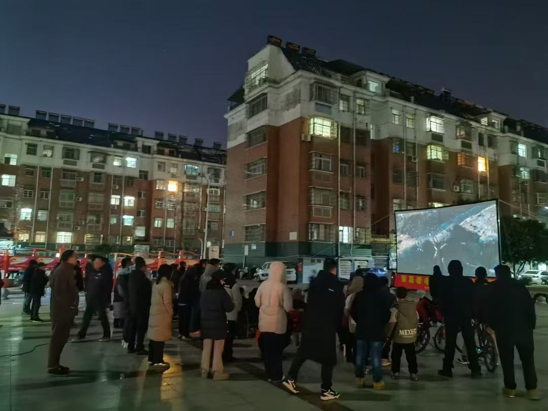 为不断丰富社区居民精神文化生活,有温度、有亮度、有浓度地传递家国情怀,近日,县电影公司走进龙山社区天龙景园小区开展户外观影活动。