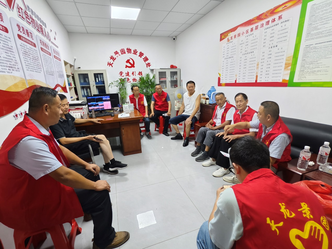 8月17日晚上,龙山社区 “两委”联合天龙景园小区党支部、业主委员会、妇委会、时代物业、党建指导员及志愿者服务队等多方力量,开展了一场针对小区住户电瓶车充电的全面大巡查活动,以实际行动守护居民生命财产安全,共建平安和谐家园。?