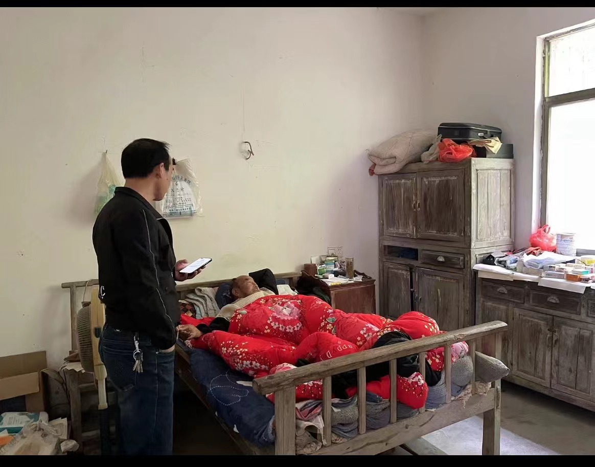 5月8日,梅河村工作人员到困难老村干、老党员家中进行慰问。