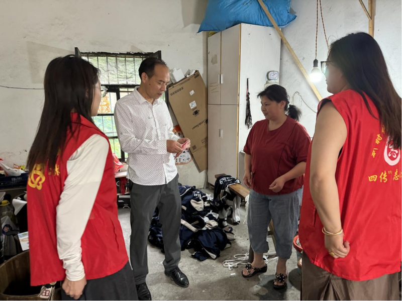 6月16日,梅河村工作人员到特困人员家庭中开展慰问。