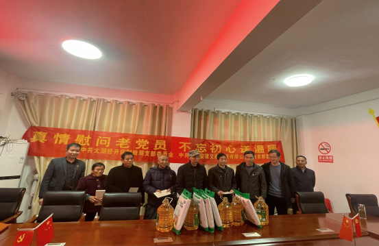 寒风瑟瑟,拦不住传递温暖的热心;冬雨绵绵,挡不住送达关怀的脚步。11月29日下午,中共太湖县经开区财政局支部委员会与中共太湖县安建交通投资有限公司联合支部委员会顶风冒雨到龙安村开展党建共建活动,县经开区管委会副主任查乐平应邀参加,为困难老党员送去了油、大米等慰问品和慰问金。
