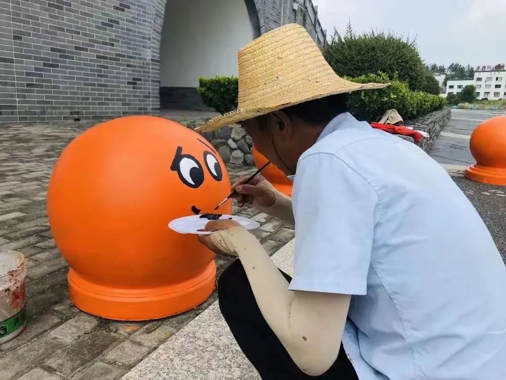 活动现场,大家给200多个原本单调灰色的石墩,涂抹上靓丽的黄色,为“圆墩墩”们穿上了明亮的“新衣”,一个个喜、怒、哀、乐等趣味表情图案在大家手中渐渐呈现出来。彩绘表情包与石墩巧妙搭配,栩栩如生,惟妙惟肖,令过往游客赞不绝口,纷纷驻足观看。