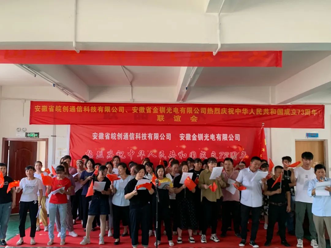 close为庆祝祖国73周年华诞,9月30日下午,安徽省皖创通信科技有限公司、安徽金钏光电有限公司联合举办“庆国庆”文艺演出,演出的主要演职人员都是企业的职工,他们用悠扬的歌声展示了开发区企业与职工昂扬的精神面貌。